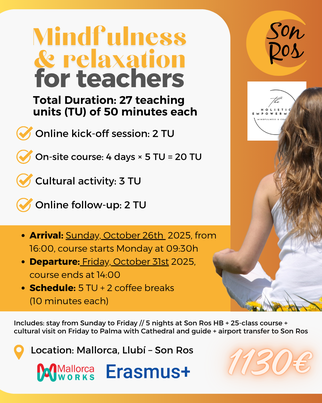 This 5-day retreat blends practical mindfulness tools with deep rest, reflection, and connection. You'll explore breathing techniques, mindful classroom rituals, and tools to build stronger relationships with students – all in the peaceful setting of rural Mallorca.